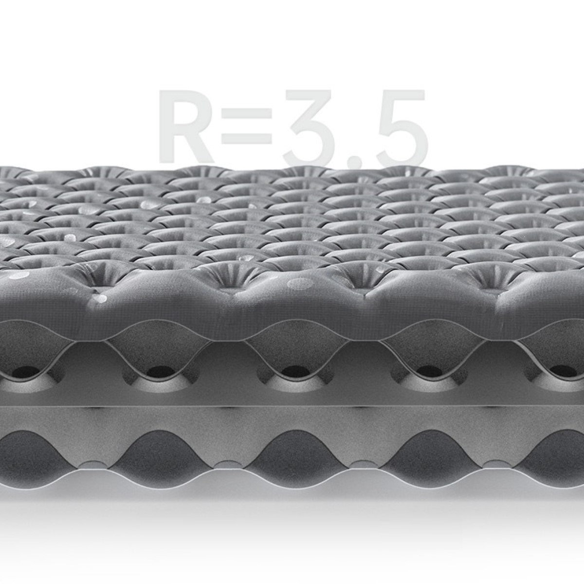 Надувной туристический коврик Naturehike R3.5 Ultra light M мумия - инновационная разработка компании Naturehike. Благодаря многослойной конструкции холодный воздух от земли не перемешивается с теплым воздухом от тела. Таким решением удалось достичь отличного показателя теплоизоляции R-Value 3,5, что позволяет использовать его на поверхности с температурой до -7°C без всякого риска.