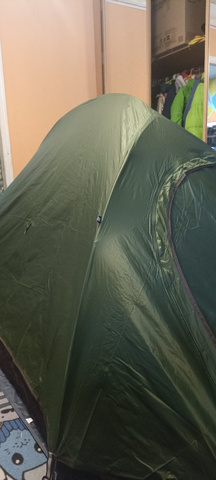Внешний тент выполнен из тонкого и невесомого нейлона 20D с плетением RipStop, PU пропиткой и силиконовым покрытием. Водонепроницаемость 4000 мм. водяного столба позволяет выдержать сильный и продолжительный дождь. Из этого же материала сделаны чехлы для колышков, дуг и самой палатки.