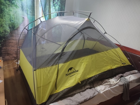 Внешний тент выполнен из тонкого и легкого полиэстера 210T с плетением RipStop и PU пропиткой. Водонепроницаемость 3000 мм. водяного столба позволяет выдержать сильный и продолжительный дождь. Из этого же материала сделаны чехлы для колышков, дуг и самой палатки. Ткань устойчива к ультрафиолету, не растягивается при намокании.